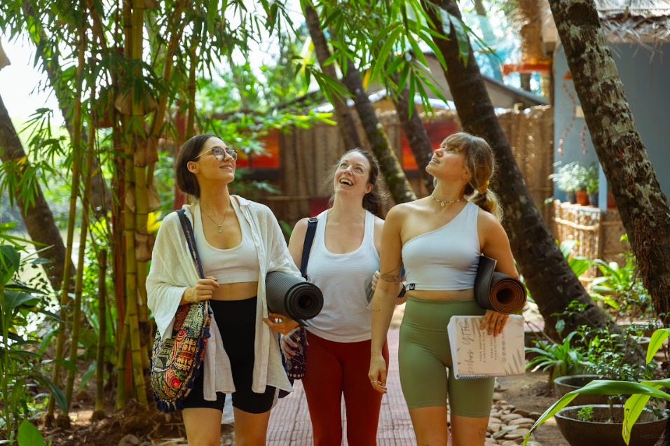 They wake to the sounds of nature and start their practice with views of the garden – palm trees, exotic birds, the occasional monkey passing through.