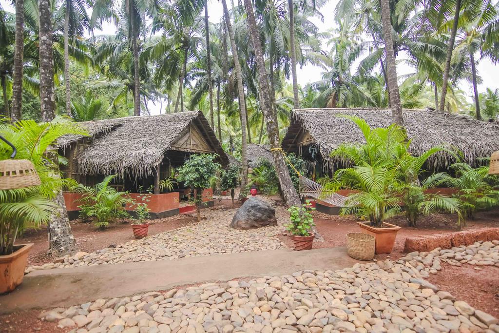 Each cottage includes a modern bathroom with hot water and a private terrace overlooking the palm garden. They are all arranged around the yoga shala, keeping your group close and connected.
